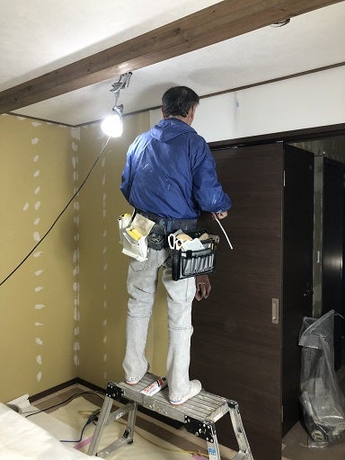 クロスを貼る前の下地処理が終了し、2階より開始しました。