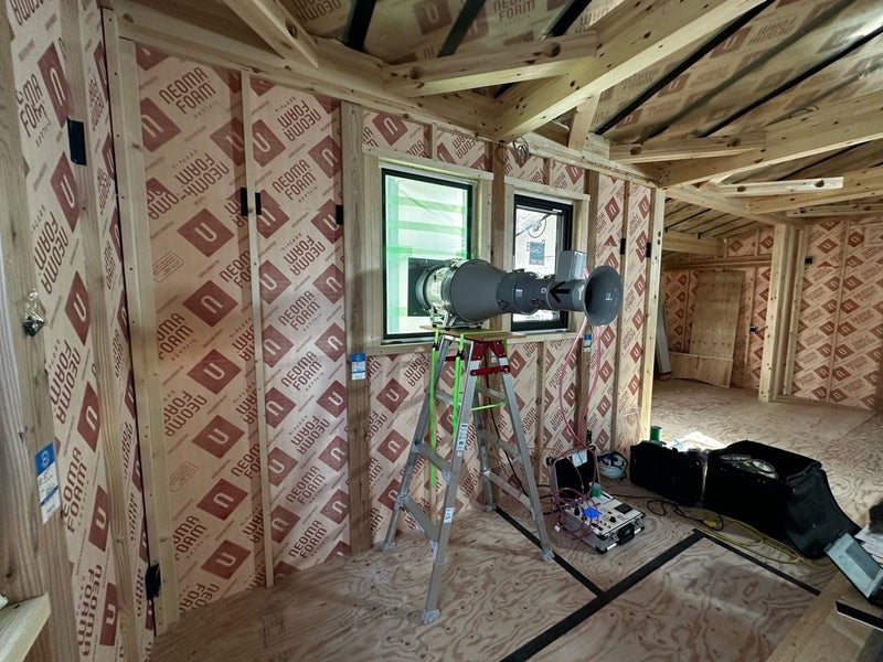防水紙が貼り終えたタイミングで1度目の気密測定を行ったのですが、測定当日の風が強すぎたため測定結果にばらつきが出てしまい、来週改めて測定をする事になりました。工事の方は天井下地など測定に影響が出ない作業を進めて行きます。