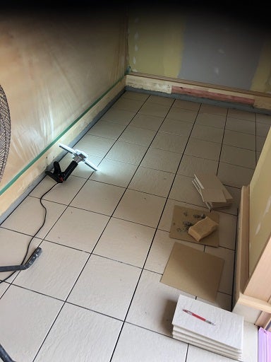 まずは、玄関とポーチのタイル貼り工事です。