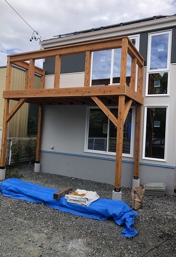 そして外部ではウッドバルコニーの施工を進めました。