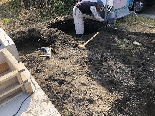 内部、外部の給排水配管工事及びポーチ作成工事等を進めていきます。来週後半には棟梁が現場に入り、土台据えを進めていく予定です。