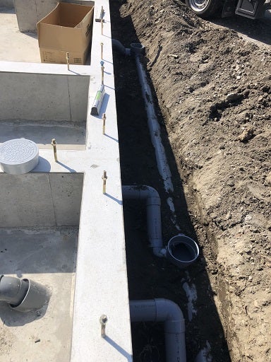 外部配管も勾配や放流先を確認しながら工事を進めていきます。