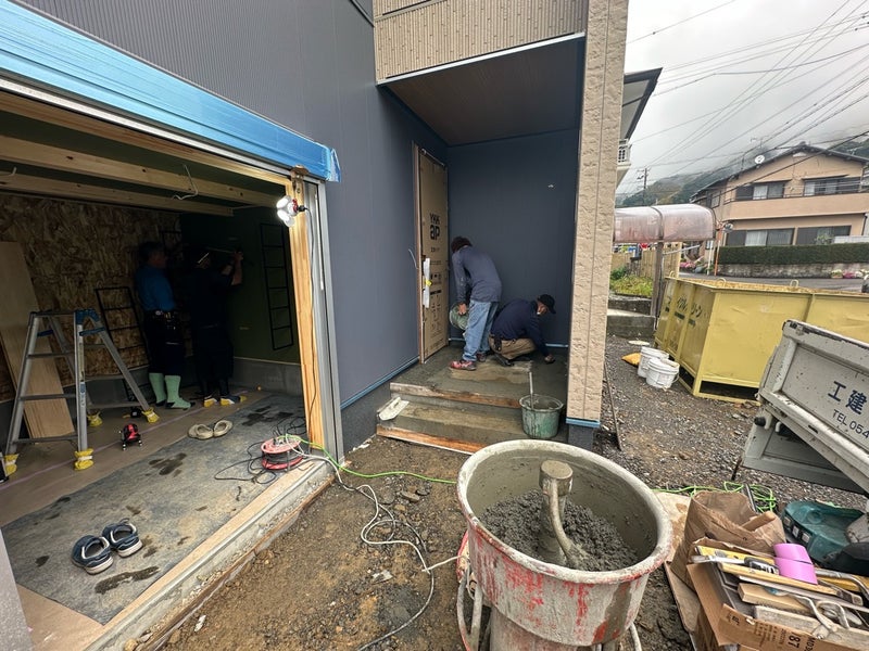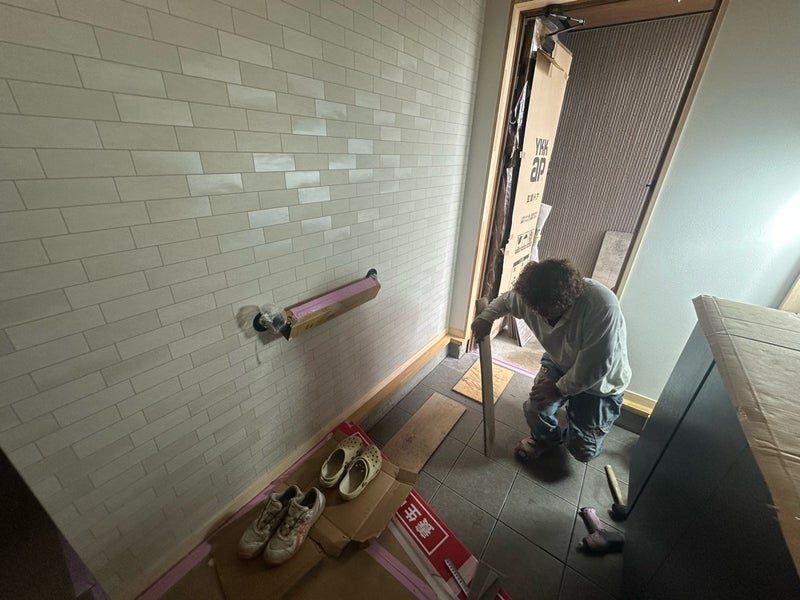 玄関と玄関ポーチのタイル施工も行いました。 とてもキレイに仕上がっています!完成まであと僅かです!K様、楽しみにお待ちください!