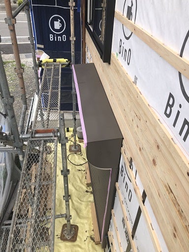 外部では外壁を張る前の下地工事を進めています。