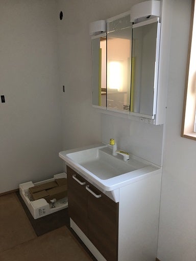 クロス工事が終わるとトイレや洗面台等の器具の取り付け工事を進めます。