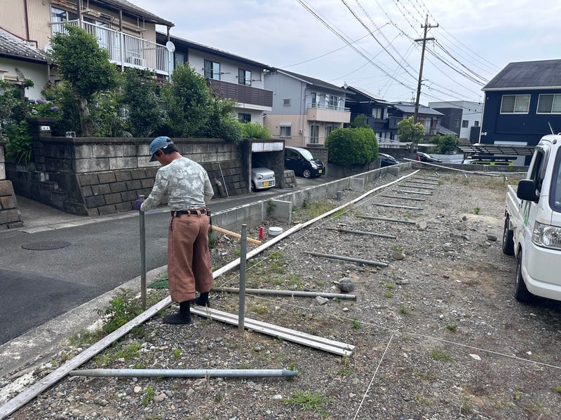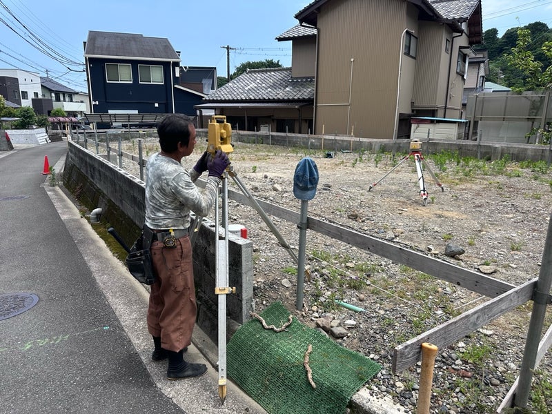 配置出しの後は掘り方工事を進めていきます。貫板に張った水糸の高さを確認しながら地面を掘っていきます。来週の半ば頃には砕石を入れて一回目の防蟻処理を行う予定です。