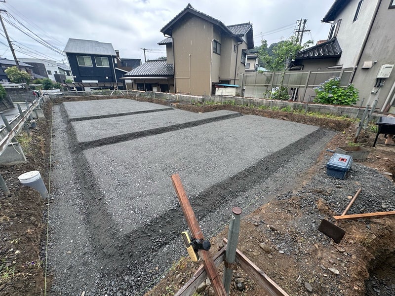 こんにちは!鎌田です。清水区のN様邸です。基礎工事の掘り方工事を行いました。