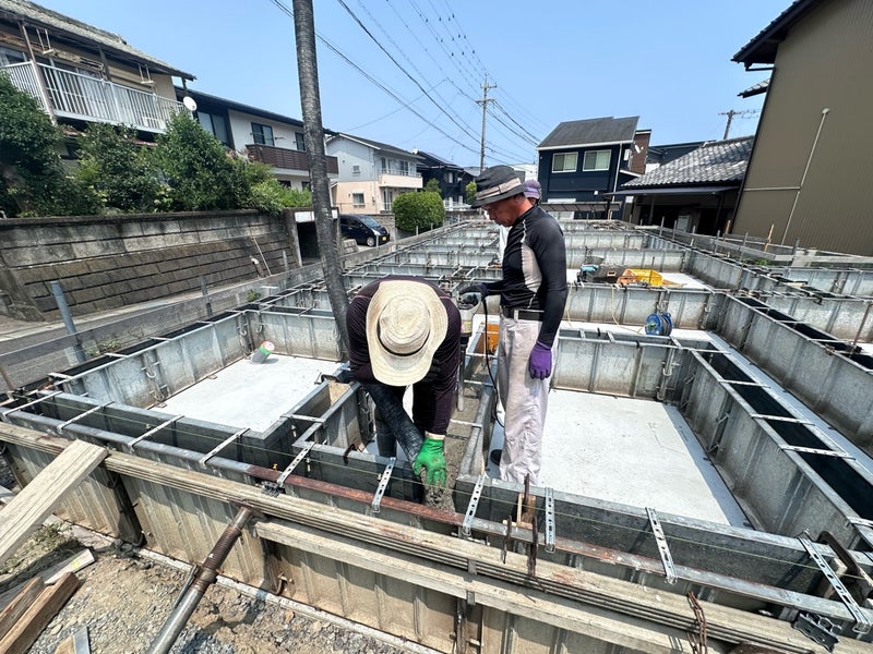 生コン打設が完了しました。この後は強度が出るまで養生を行い、型枠を外したら基礎は9割完成です。上棟まであと少し、楽しみですね!
