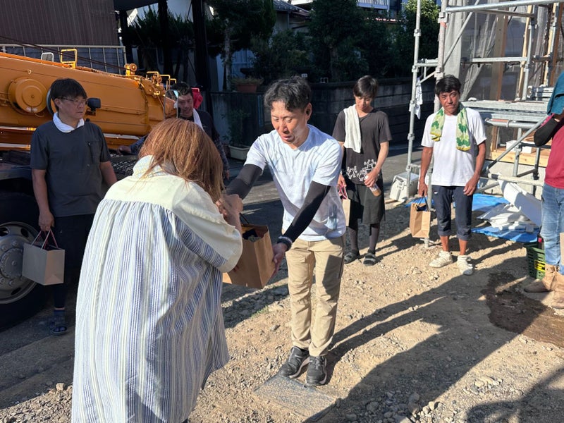 そしてお施主様より職人さん達へお土産。ひとりひとりに配って頂きました(#^^#)