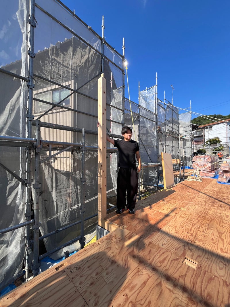 作業開始前には、息子さんにて記念の柱建てをして頂きました♪
