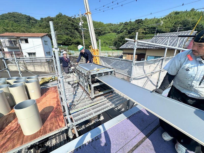 だいたい30分程で板金の成型が完了しました。これを屋根に施工していきます。