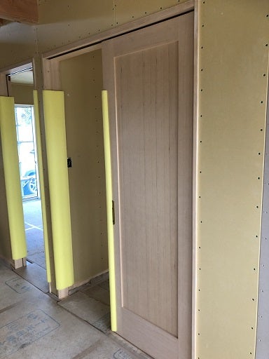 ここでも、プラスターボードのビスの間隔や建具の吊り込み状況の確認を行います。