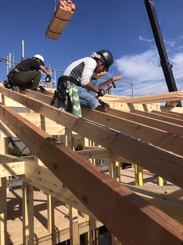 天候不良が続いておりましたがピンポイントで上棟日和となりました(*^^*)