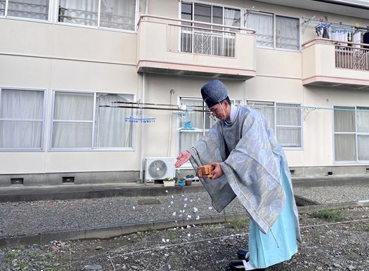 深々とお辞儀をし、工事の無事安全を祈ります。一通り儀式が済み、締めはお決まりの祝杯