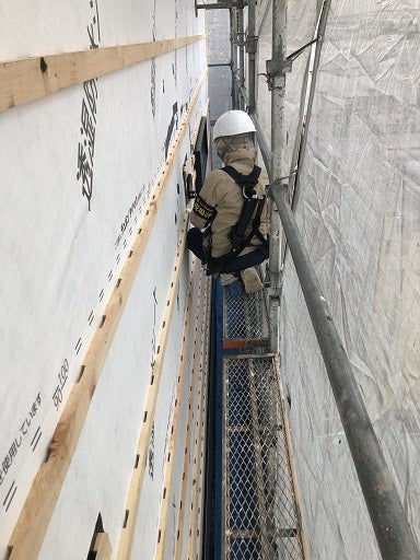 外部の透湿シートの施工及び通気胴縁の施工が完了したので早速社内の外装下地検査を実施しました。