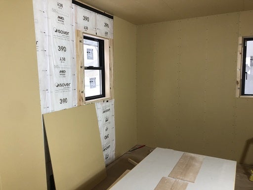 現在1階部分を張り終わり2階部分を張り始めました。