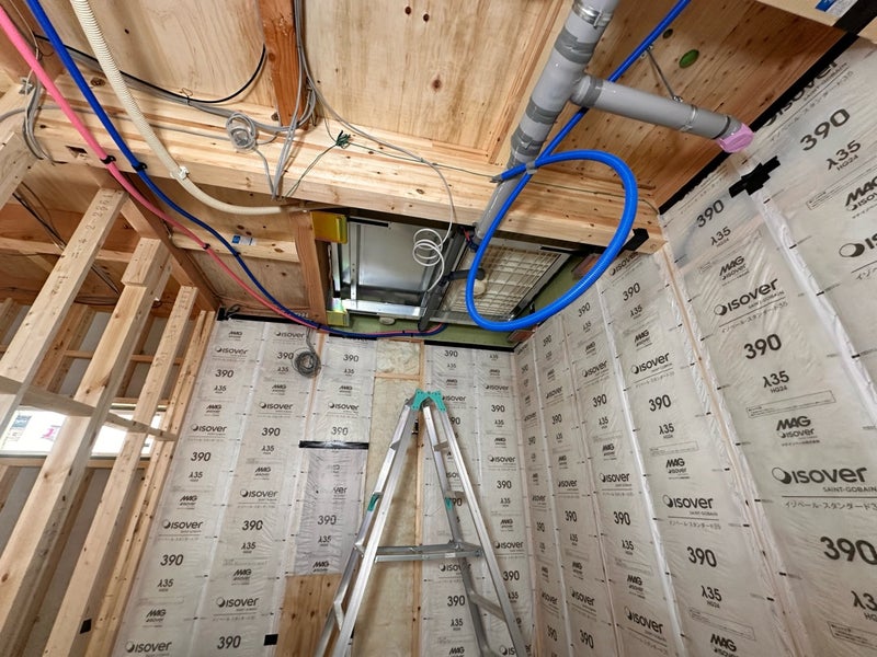 ユニットバスの施工も行なっています。2階の設置なので架台を設けてその上にユニットバスが乗るような仕組みになっています。次のお打ち合わせの時には出来上がったお風呂を見ていただけると思います。O様楽しみにしていてください!