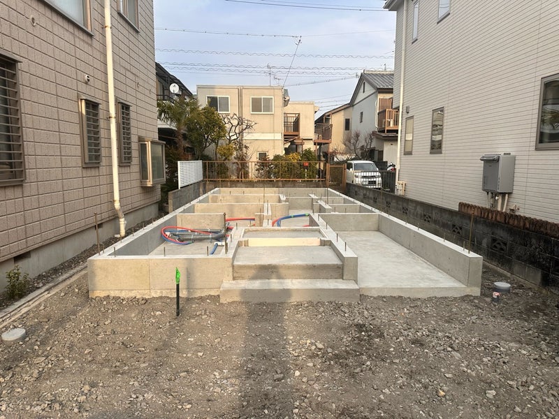 こんにちは!鎌田です。葵区のO様邸です。基礎工事が完了し、給排水管の施工を行いました。