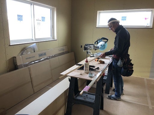棟梁は1階部分の巾木や廻り縁の取付を終わり、現在2階部分を進めています。