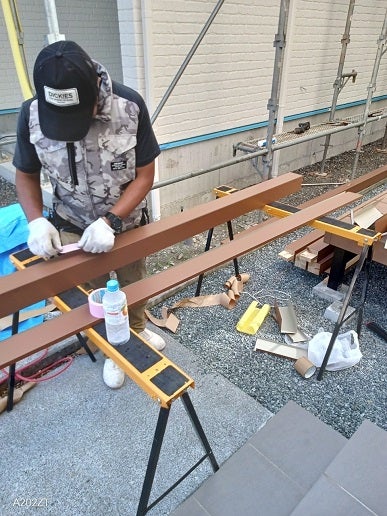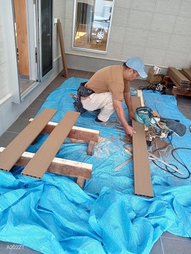 最後にフェンス(木粉に樹脂が入っている物)をカットして取り付けていきます。
