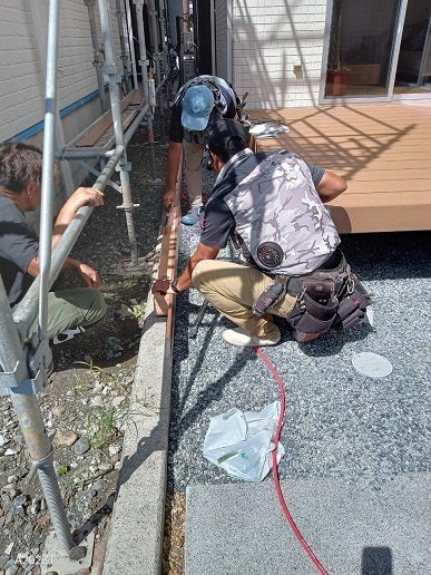 こちらは雨などの水の侵入を防ぐため板金(ガルバリウム鋼板)で巻きます。
