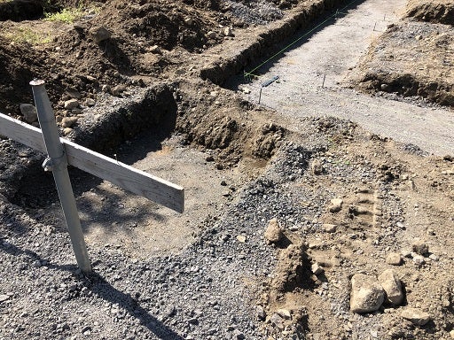 この後、捨てコンクリートの枠を組み、打設準備を進めていきます。