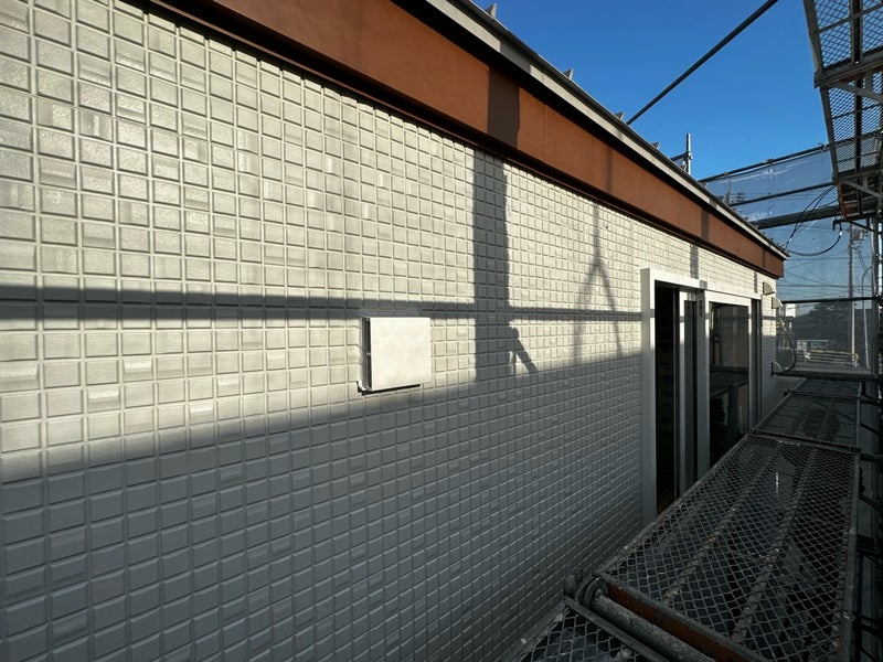 外部は外壁材施工とコーキング工事が完了し、屋根に太陽光パネルを設置しました。 もう少しで足場撤去になります。外観がどんな風になっているか楽しみにしていてください!