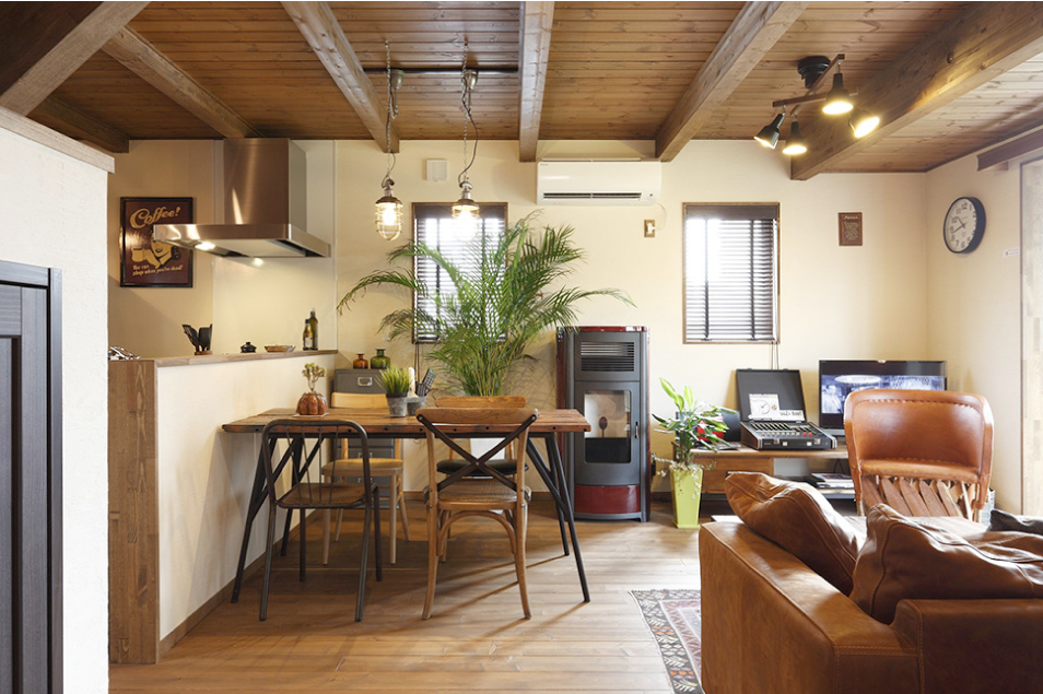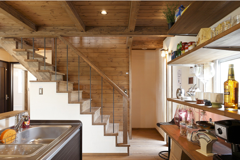 1階のリビングは家族の団欒スペース。家族で食事したり、話しをしたり、くつろげる場所。時には友人を招いてパーティーをするのもフレキシブルに使えるオープンリビングなら可能。キッチンもリビングも自分スタイルで楽しめる