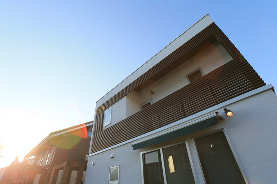 白い壁×木のルーバーの外観、自然素材の室内、第二のリビングとして使えるウッドデッキなど楽しく暮らすための工夫をギュッと凝縮。ビルトイン・ガレージタイプもあるので、ライフステージに合った使い方ができます。