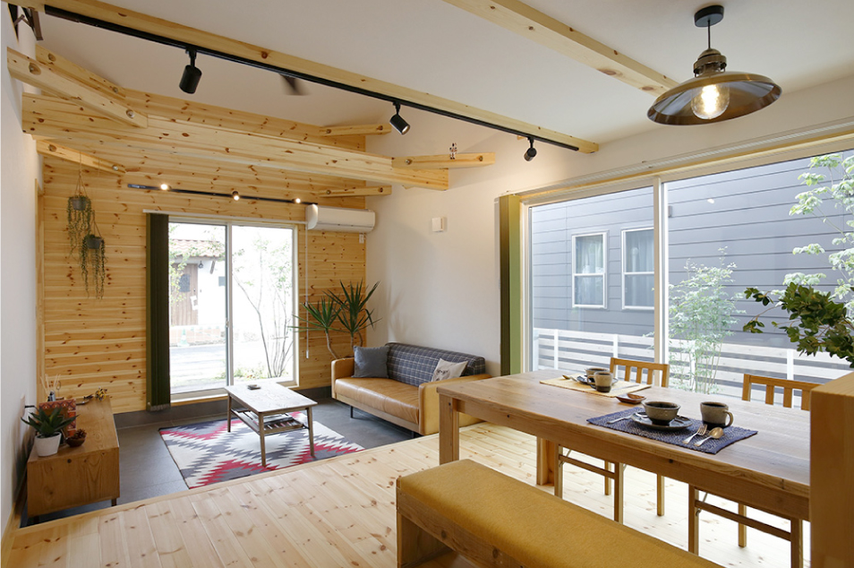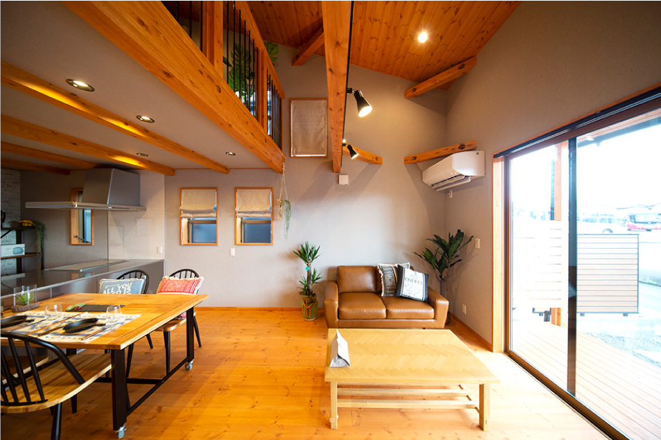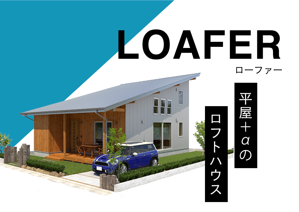 LOAFERは、平屋にロフトをプラスした、ちょうどいい広さのロフトハウス。開放感あふれる吹き抜けや自然の光と風を生かす設計で、どの季節も心地よく暮らすことができます。