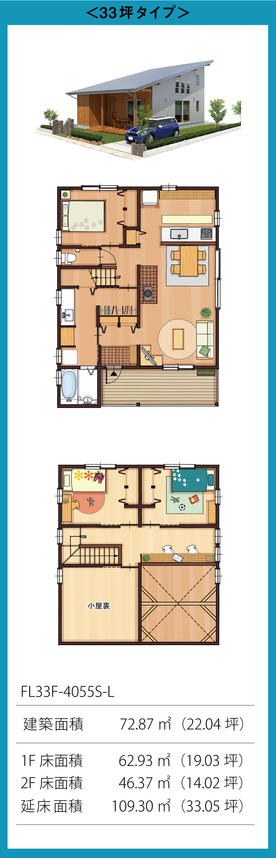 平屋には憧れるけれど、部屋数が心配…。LOAFERはそんな家族にちょうどいい間取り。収納や書斎、シアタールームなど、無限大の活用ができる小屋裏が魅力です。