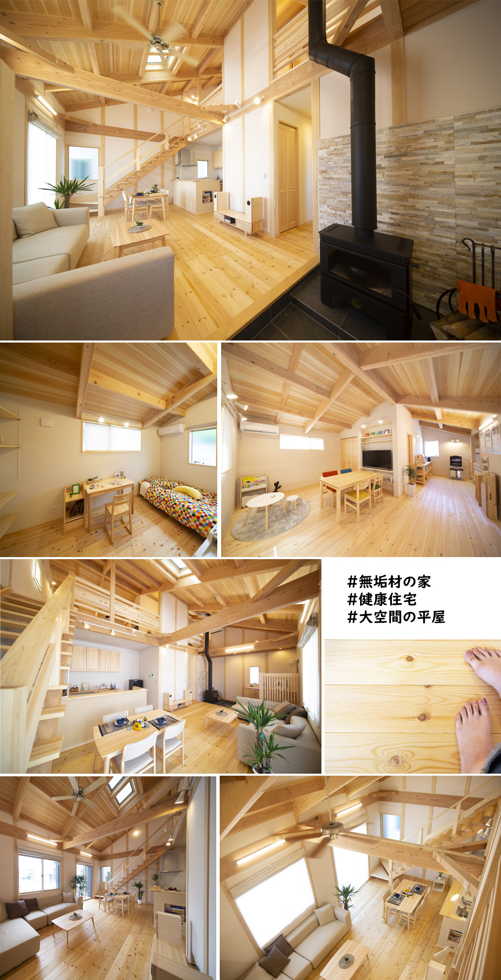 無垢の家の夢ハウスは吹き抜けの大空間が気持ちいい木のぬくもりを感じる家。木の香りと素足に感じる木の感触が癒しをくれる本物の健康住宅としても人気です。