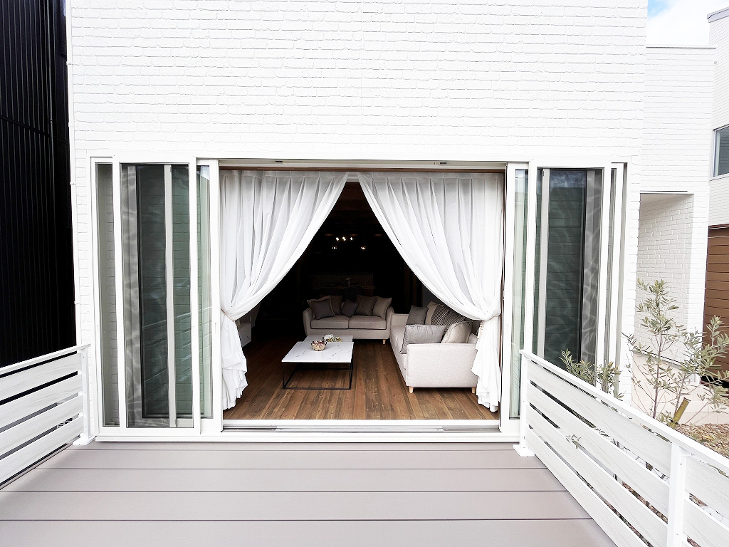 ブルーワンの新ブランドGOJOUはプライベートを確保しながらも空やバルコニーを楽しめる光の射す家。ガレージ付きの家としても車好き、自分だけの世界を楽しめる家です。