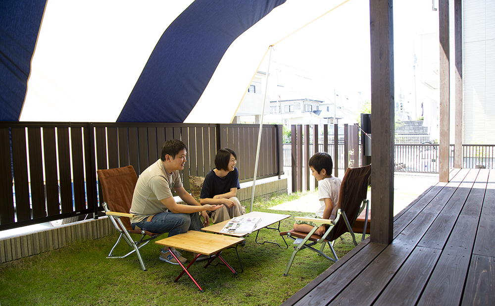 ご主人:ウッドデッキは2年目に自分で塗り直しました。そんなに大変じゃなかったですよ。子どもの友達が遊びに来るとみんなで庭やウッドデッキを走り回ったりしたりしてて、そういうのを見てると庭もウッドデッキもあって良かったなって思います。あと、伊豆のモデルハウスも見に行かせてもらったんですが、そこに小屋があったんですよね。それが良くてAzitO(姉妹ブランド)の小屋も作りたいなって密かに思ってます(笑)。