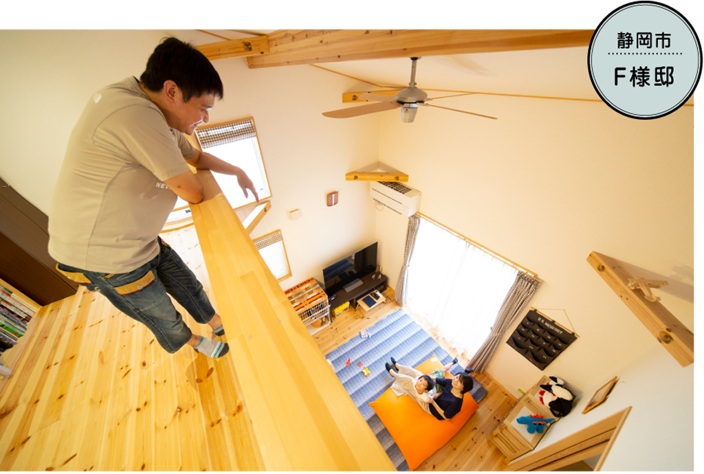 ご主人:他社のログハウス風の家も良いなって思ったんですけどね。ちょっと遊びゴコロが強すぎると言うか…毎日住む家にはどうかな?って。その点、FREEQは遊びゴコロがありつつ生活感もちゃんとある、その“ちょうど良い”感じも良かったですね。小屋裏やストッカーの秘密基地みたいなところに、心をくすぐられました。