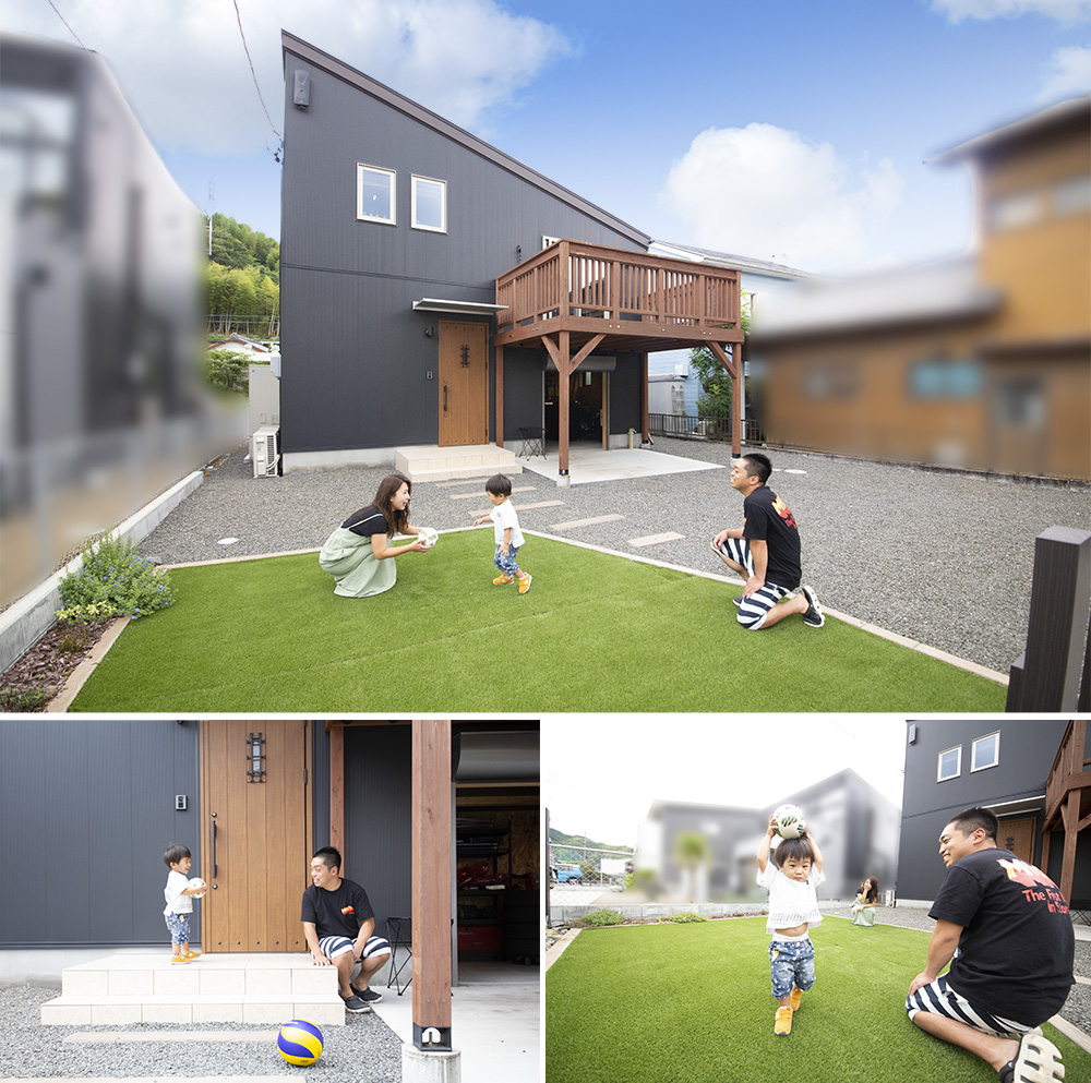 ご主人:昔から庭で家族とBBQするのが夢だったので、敷地に余裕があるところを探しました。アパートに住んでた時の地域では、なかなか良い土地が見つからなかったので、あまり地域を限定しすぎず由比から藤枝辺りまで広範囲で見ました。売土地のサイトはよくチェックしてましたよ!藤枝に遊びに来てたときに「この辺もアリかもね〜」なんて話してたこともあったんですが、急にここの土地が空いて。充分な広さの庭が作れて、その上車も4台以上置けるこんな広い土地が予算内で見つかるとは思いませんでした。