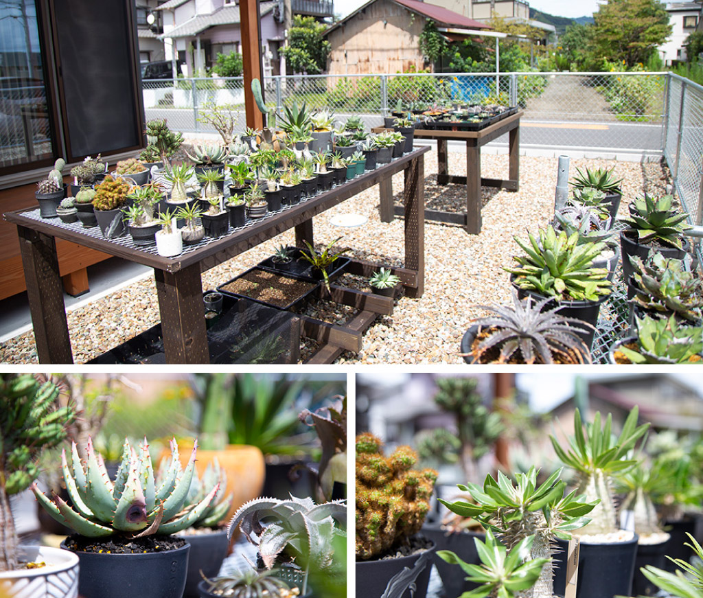 ▲ご夫婦の趣味の植物栽培。広々とした庭で念願の趣味を思いっきり満喫!植物達ものびのび気持ち良さそう!SHOPのようにディスプレイされた植物を見て、お店と間違われたこともあるそう
