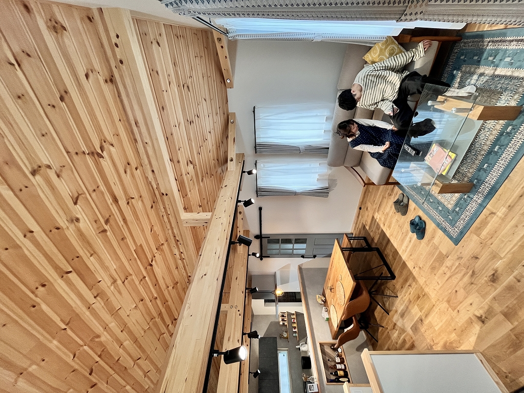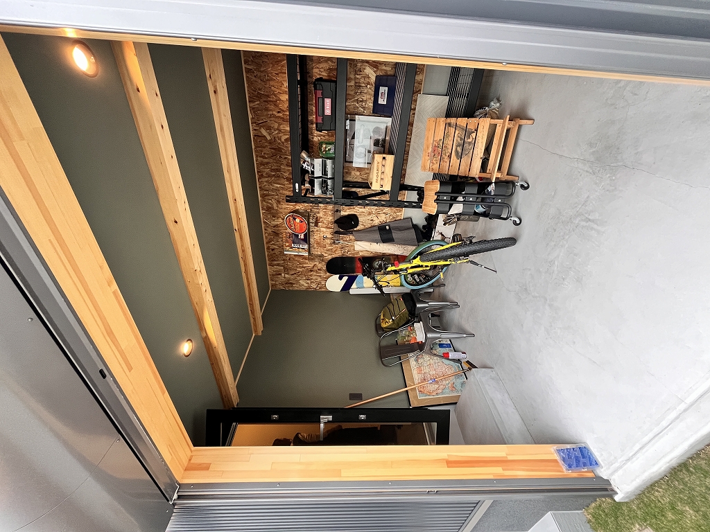 A.:引越ししてから家族や友人が家へ遊びに来てくれました。玄関に入った瞬間の木の香りやスキップフロアの間取りに驚かれたり、私達のお気に入りであるバーンドアや洗面所、アウトドアストッカーについてもたくさん褒めてもらい、嬉しい気持ちになりました。