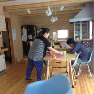 更に子供の動きが良くなり、床に寝そべって遊ぶようになりました。このこも無垢の床が気持ちいいのかなぁ?(奥様談)